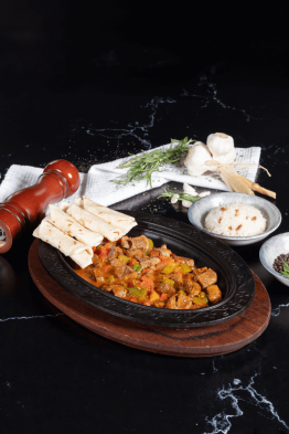 Tereyağlı Bazlama, Dana Bonfile Dilimleri, Kibrit Patates Yoğurt ile