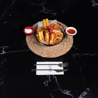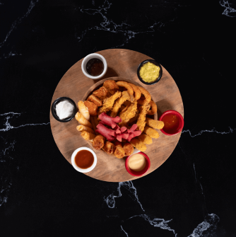 Patates Kızartması, Çıtır Tavuk, Sigara Böreği, Sosis, Soğan Halkası, Patates Kroket, Saur Cream Sos ve Sweet Chili Sos İle, Mozerella Stick (1 KİŞİLİK)