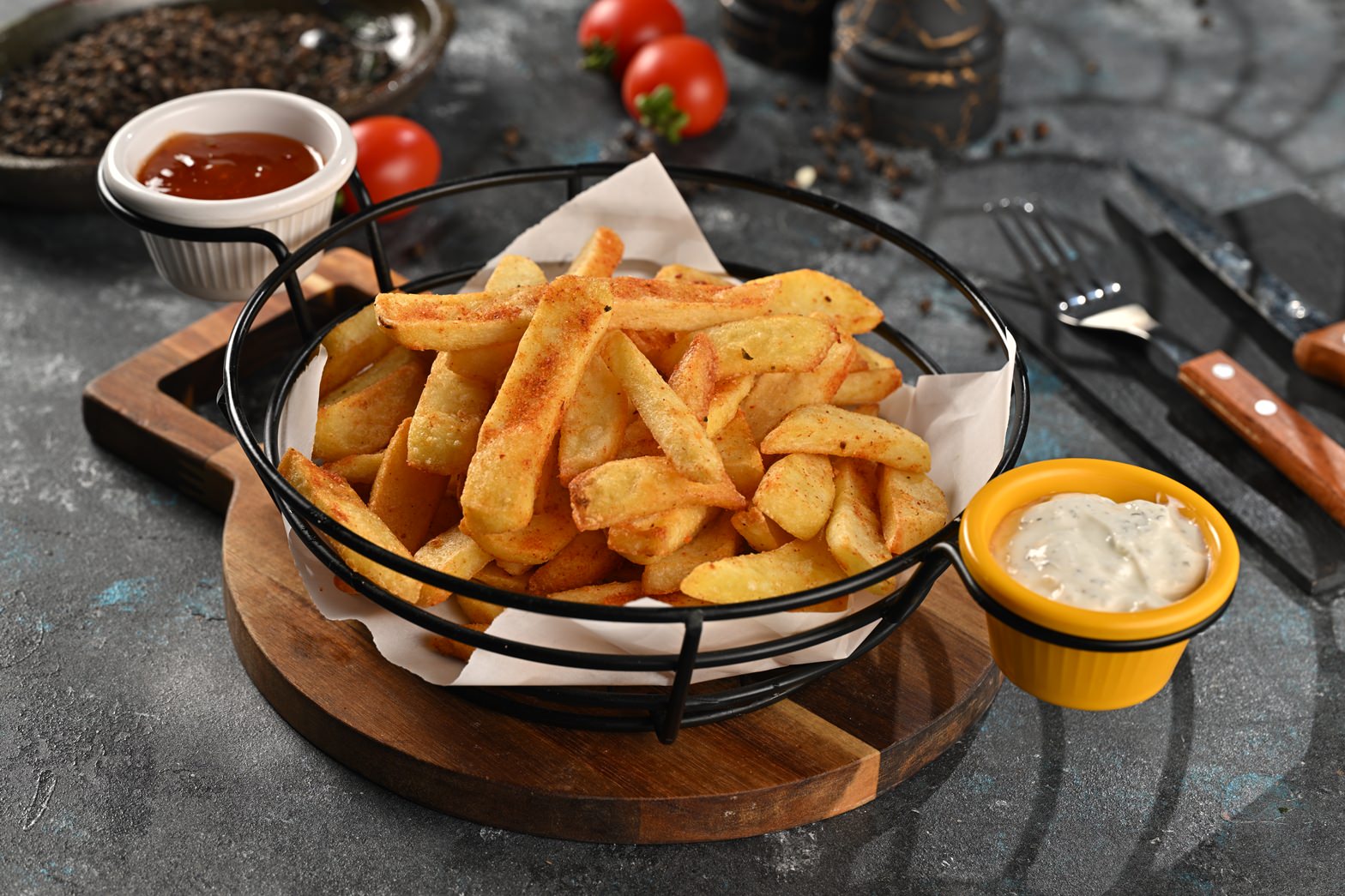 Dana Biftek-Renkli Biberler-Acı Meksika Sos-Meksika Fasulyesi-Çedar Peyniri-Sweet Chili Sos-Dip Sos-Patates Kızarması Eşliginde Servis Edilir.