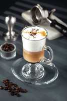 Espresso, süt ile hazırlanılır (Vanilya, Çikolata, Karamel, Beyaz Çikolata, Lavanta)